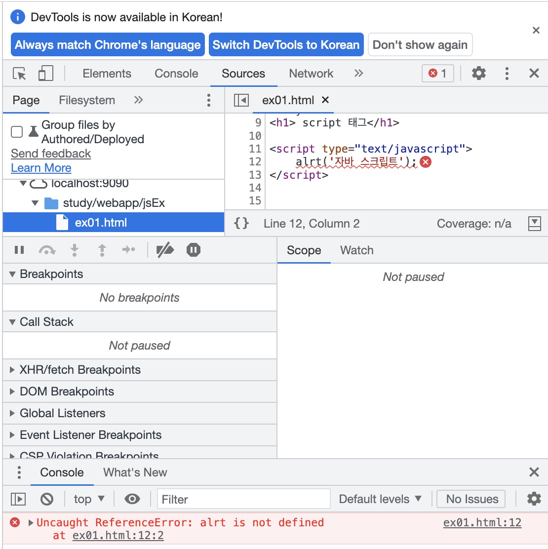 ๊ฐ๋ฐ์ ๋๊ตฌ๋ก ๋ก๊ทธ๋ฅผ ์ฐ์ด์ ํ์ธํ๊ฑฐ๋, ๋ธ๋ผ์ฐ์ ์์ ์๋ฌ๋ฅผ ํ์ธํด์ผ ํ๋ค.