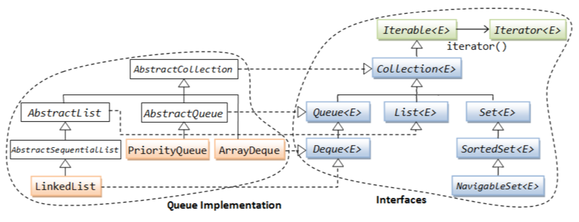 2.Queue ์ธํฐํ์ด์ค์ Queue ์ธํฐํ์ด์ค ๊ตฌํํด๋์ค ๊ณ์ธต๋(hierarchies)