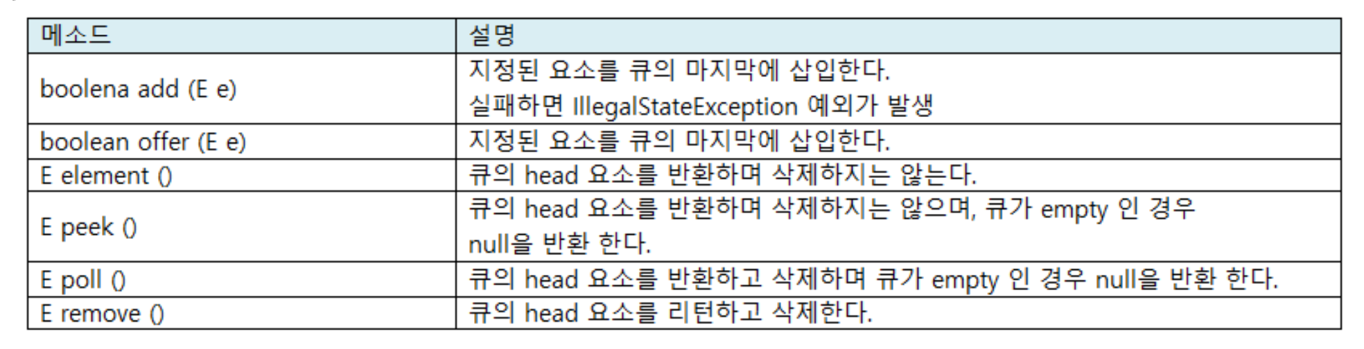 q.offer("์๋ฐ"); // ํ์ ๋ง์ง๋ง์ ์์ ์ถ๊ฐ
